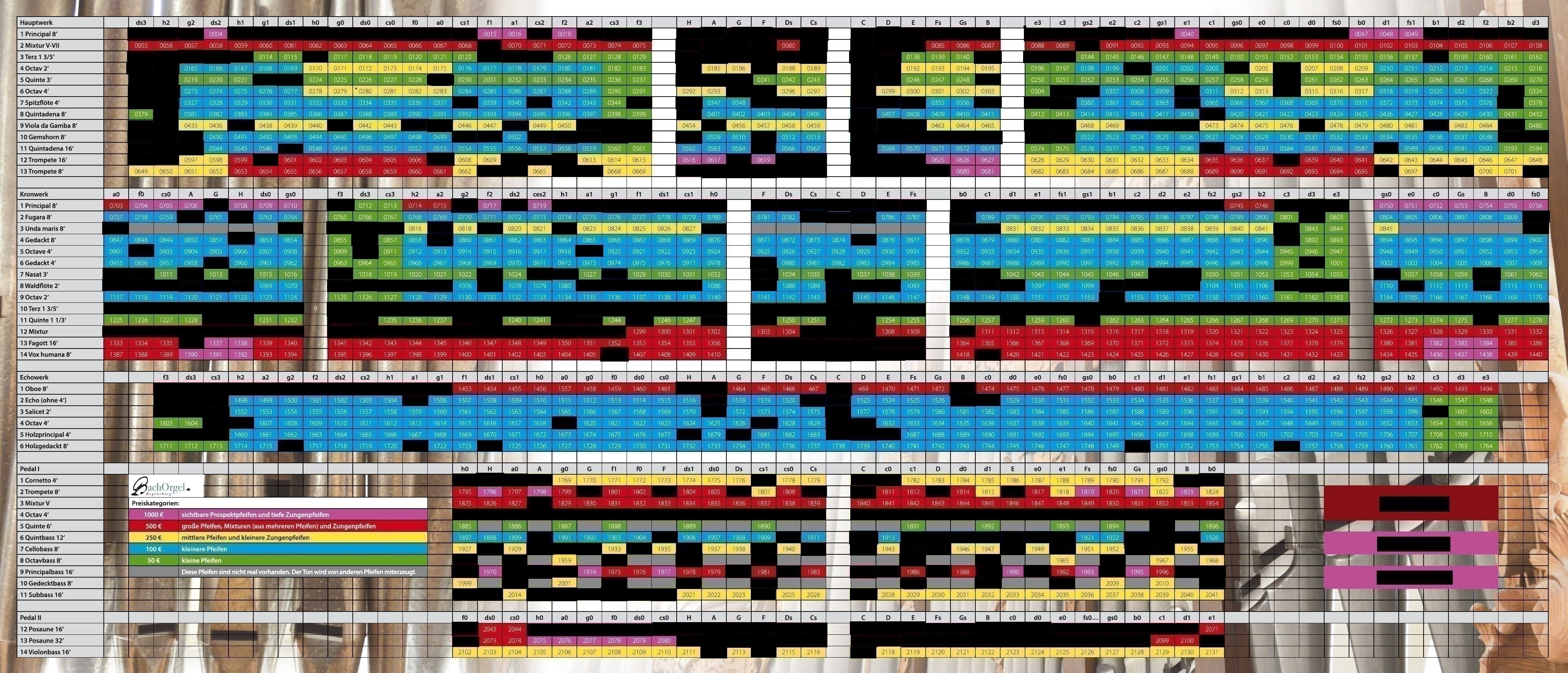 2. Welche Pfeifen sind noch frei? Einen aktuellen Pfeifenplan sehen Sie hier unten.